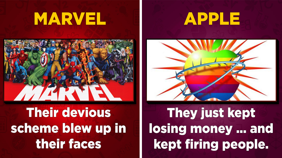 In time, comic book collectors realized none of the books they were squirreling away were rare enough to ever gain value. They stopped buying, comic book stores shut down, Marvel's revenues fell, and the stock price plummeted. Marvel declared bankruptcy in 1996. Another billionaire managed to take over the company -- Carl Icahn, future economic adviser to the Trump administration -- and Marvel famously sold off the movie rights to X-Men, Spider-Man, and more to stay afloat.