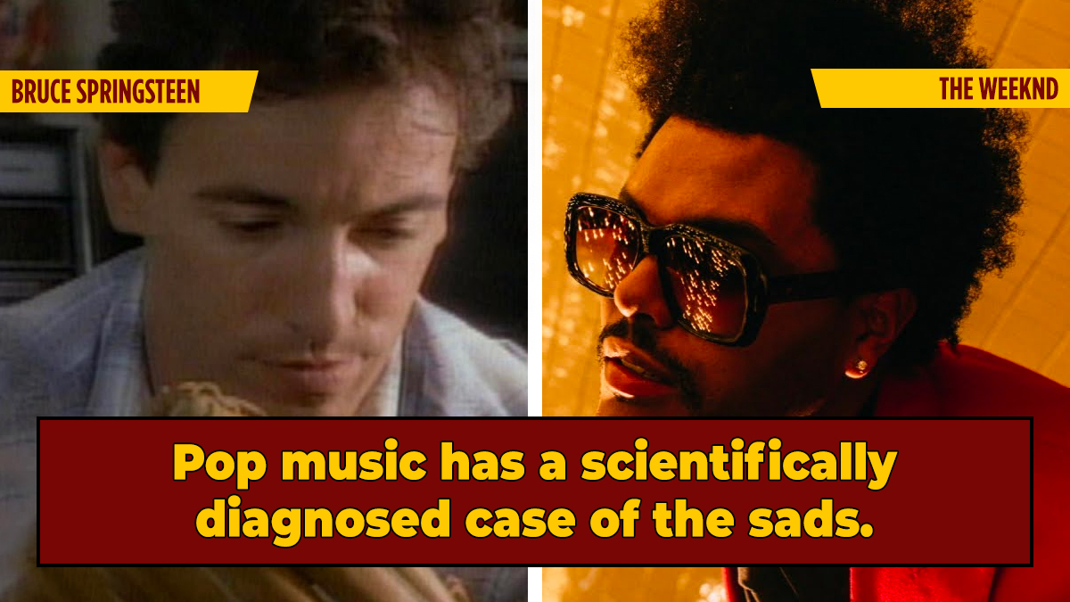Apparently, a bunch of old old farts recently started wondering why today's music is so sad and angry, but unlike most of their suspicions regarding the kids these days, it turns out they were right. A bunch of different studies have analyzed everything from the lyrics to the density of minor versus major chords in songs from the '50s and '60s through about 2015-ish. They've all shown the same thing: Starting around the '80s, sadness, anger, fear, and other negative emotions became way more common in pop music, while joy and confidence sharply declined, Demi Lovato notwithstanding.