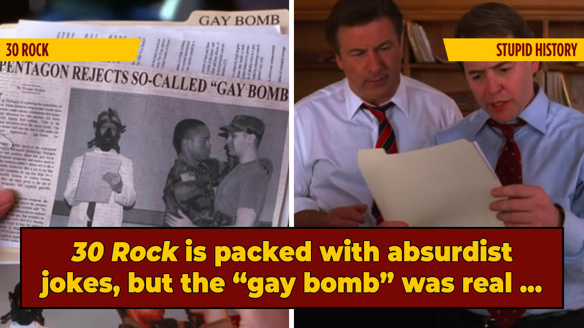 It's the "Gay Bomb" clip. Again, it's a good bit, highlighting the military-industrial complex's need to spend frivolously on convoluted solutions while also poking fun at the level of unease so many government officials have with homosexuality. Still, outside of it being funny, there's nothing seemingly remarkable about it. 30 Rock is packed with so many absurdist jokes that you'd be forgiven for not having given this one another thought. I know I didn't, at least upon first viewing, but ... the "Gay Bomb" was a totally real thing.