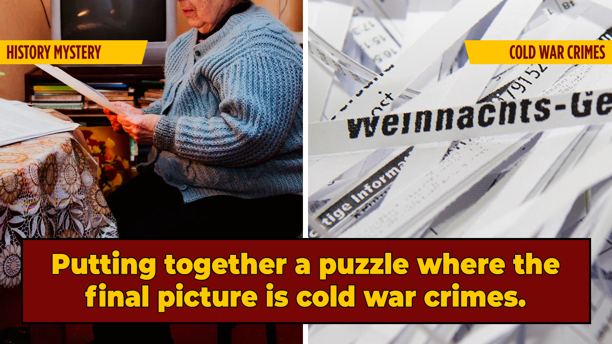And they all would've gotten away with it, too (as many did) if it weren't for those puzzling women. While most files couldn't be pulled from the jaws of the "shredding wolves," the Stasi's custom machines, in time, much was recovered on the tail-end. Between four to six hundred million pieces of destroyed paper were recovered, many torn by hand as the Stasi's special Soviet shredders buckled under the weight of literal tonnes of documents. Ever since then, putting those pieces back together has been the job of Germany's Puzzle Women, a crack team of 1,800 crossword solvers who've made it their life goals to reassemble the 69 miles long paper trail the Stasi left behind. Today assisted by both man and machine, the remaining team has managed to puzzle together a lot of the Jigsaw shit the Stasi got up to, reading up on the fates of kidnapped children, murdered innocents, or how the ancient head of the Stasi kept complaining about punk and metal music ruining communism.