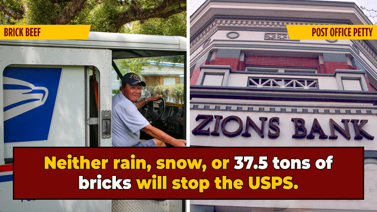 Safe to say, the postal workers were none too pleased, but by the time the government branch could pass a new 200-pound daily weight limit, their professionalism had already caused all of the heavy parcels to have been delivered -- through that same professionalism didn't prevent the SLC postmaster from referring to Coltharp as a "son of a bitch” in official correspondence. In an act of petty but technically correct revenge (the best kind of revenge), the bureaucrats did refuse to deliver the bricks straight to the bank's construction site, insisting the bankers come to sign for and pick up the heavy parcels at the post office. One by one. All 1,500 of them.