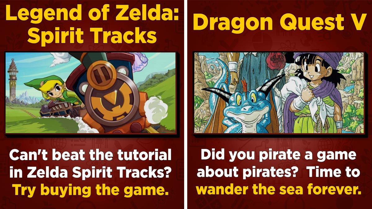 The Legend of Zelda: Spirit Tracks immediately lives up to its name as one of the first things players have to do is learn how to drive a train, which makes us wonder how many retired dads were involved in designing this game. And it's especially hard for pirates -- not just because they're only used to ships -- but also because pirated copies will intentionally start throwing all sorts of bonkers problems at players who took the free ticket.