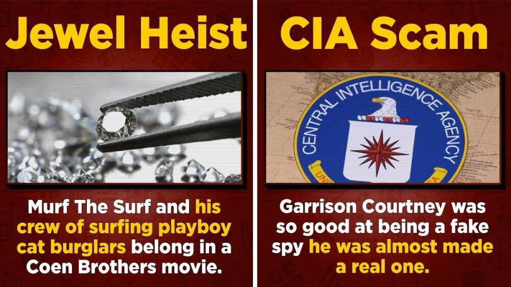 Everyone got super-arrested, and most of the jewels were recovered. The Star of India was discovered in a bus station locker, while the ruby was ransomed from an underworld fence and returned to the museum by John MacArthur, founder of the MacArthur genius grants. Murf the Surf himself was ultimately given a life sentence after the bodies of two female associates were found in a Florida creek, which really put a damper on the opening of his wacky biopic Live A Little, Steal A Lot. But no matter how hard they searched, the authorities were never able to locate the Eagle Diamond. To this day, nobody knows what happened to it. Our theory is that it was sold to a Saudi prince with an underpaid Thai cleaner and continues its reign of chaos to this day.