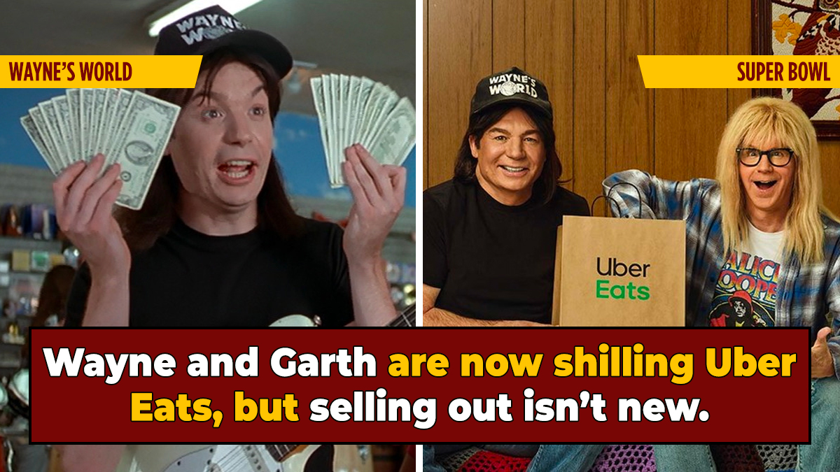It's Super Bowl time, which means that, in addition to some sporting event, we're getting big-budget commercials in which famous actors don ill-fitting costumes in order to exhume beloved characters from the pop-culture grave all in the service of some random product you now associate with a sweatily desperate attempt to monopolize your nostalgia. This year it's Wayne and Garth from Wayne's World shilling for Uber Eats, the Noah's Arcade of food delivery services.