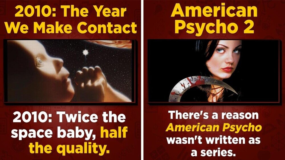 Of course, these studio execs don't intentionally aim to produce bad sequels. I'm sure they're looking to strike gold with the next The Dark Knight or Toy Story 2 that will set the stage for a lucrative franchise. But even when this doesn't happen, entertainment moguls aren't too pressed. That's because even the most critically rebuked sequels still tend to make more money than the original, so, of course, they would take a shot at pumping out a second version of an already successful film ...