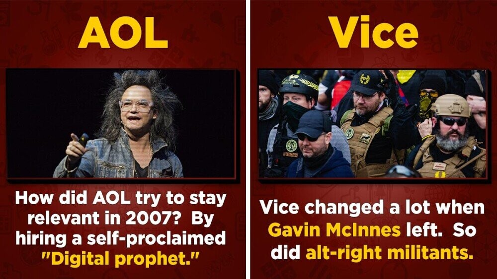 Vice is the number one website for people who want to stay abreast of current affairs while reading passionate opinions on CBD oil. It was actually founded in 1994 as a print magazine called Voice of Montreal, becoming Vice in 1996 to sound less like a bad indie album. And one of its three founders, Gavin McInnes, would eventually launch noted fascist clownshow organization The Proud Boys.