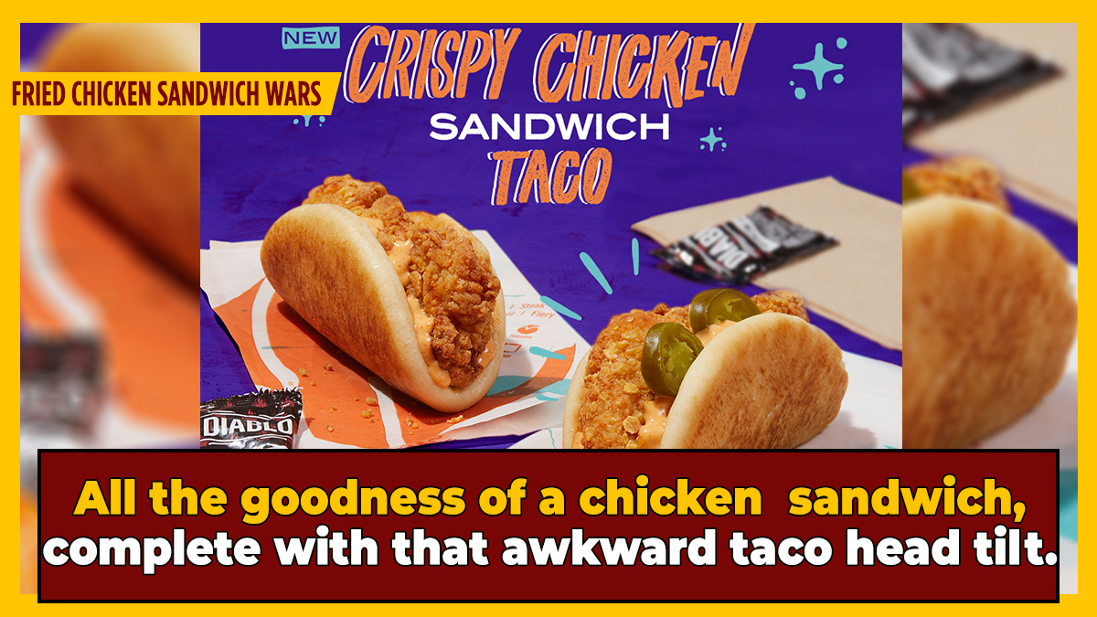 Consisting of an "all-white piece of chicken" "marinated" within a "jalapeno buttermilk" creation, "fried with a crunchy tortilla chip coating," the drunken late-night staple's answer to a chicken patty will come nestled within a presumably biscuit-y taco-shaped "puffy bread" creation and kissed with a "creamy chipotle sauce," with optional slices of jalapeno for a bit more spice, CNN reported.