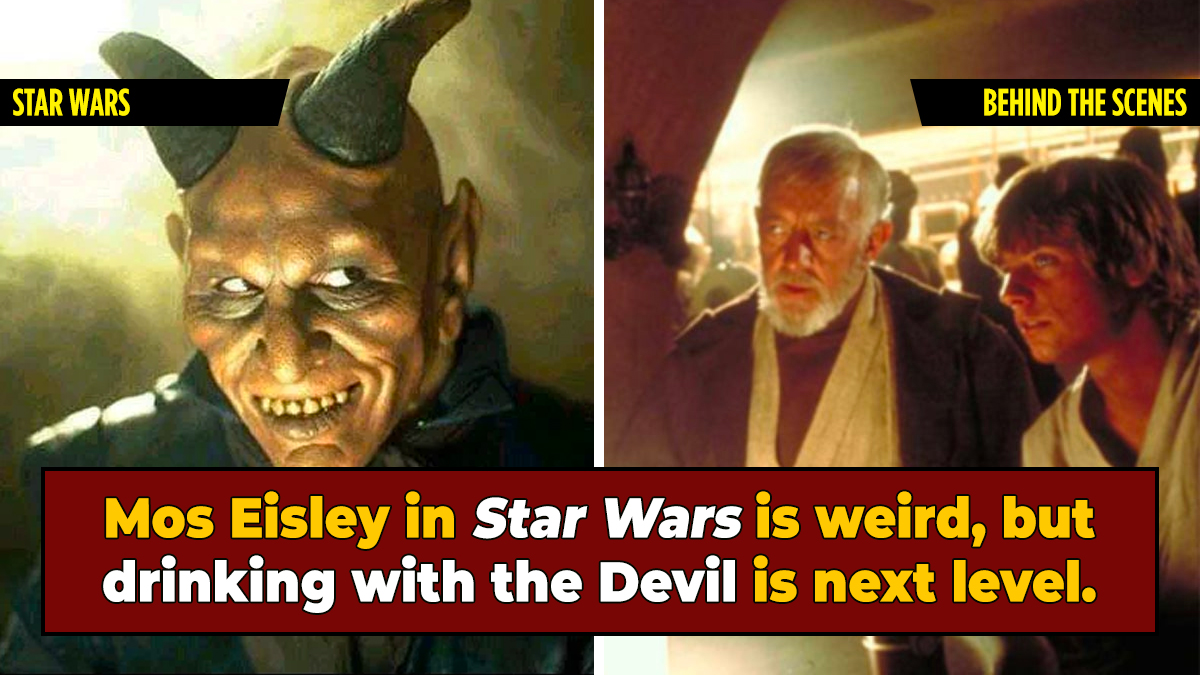 So why is Satan on Tatooine chilling out with Greedo and Hammerhead? Lucasfilm later explained that this guy is a Devaronian, a race of aliens that just so happen to look exactly like Lucifer. But the real reason is because of movie make-up legend Rick Baker.