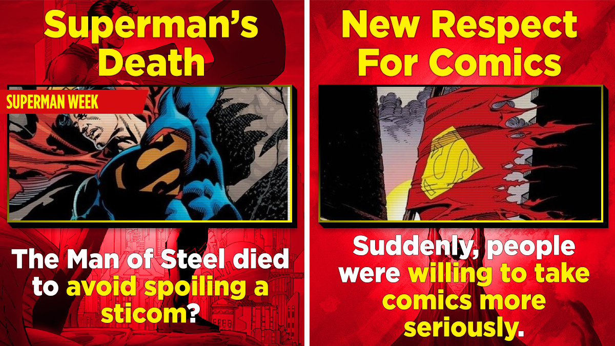 Here's how millions of children found out Superman was going to die in 1992: through a reporter saying, "It's a bird, it's a plane ... it's a CORPSE?"