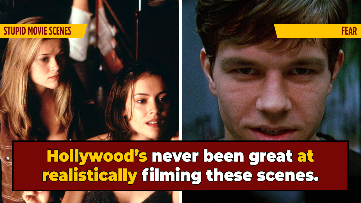 Hollywood has never been great at realistically portraying sex, with all those nonsensically sheet-covered breasts and anatomically incorrect positions. Still, at least it's usually clear what the characters are supposed to be doing. The same can't be said for a particular scene in Fear, a sort of gender-flipped, grungy version of Fatal Attraction from 1996. It's a screwed-up movie featuring every kind of abuse, the murder of both people and dogs, and Mark Wahlberg bringing Reese Witherspoon to orgasm within seconds in public on a rollercoaster.