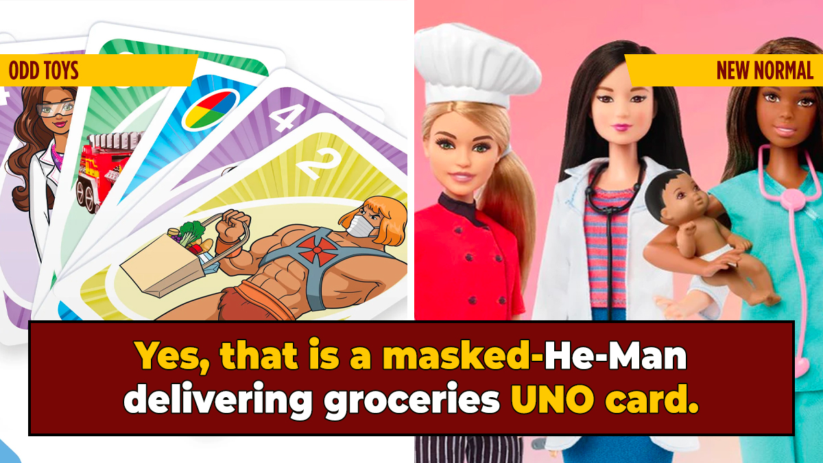Meanwhile, toy giants have found their niche inside the new market as well. Companies like Fisher-Price and Mattel have their own lines of masked dolls, while Matchbox released its Frontline Heroes Vehicles, including special ambulances, garbage trucks, and the most important vehicle in the world, the delivery van. There's even a special UNO deck that features toys as essential workers, like Virologist Barbie and DoorDash Worker Stiffed Out Of A Tip He-Man.