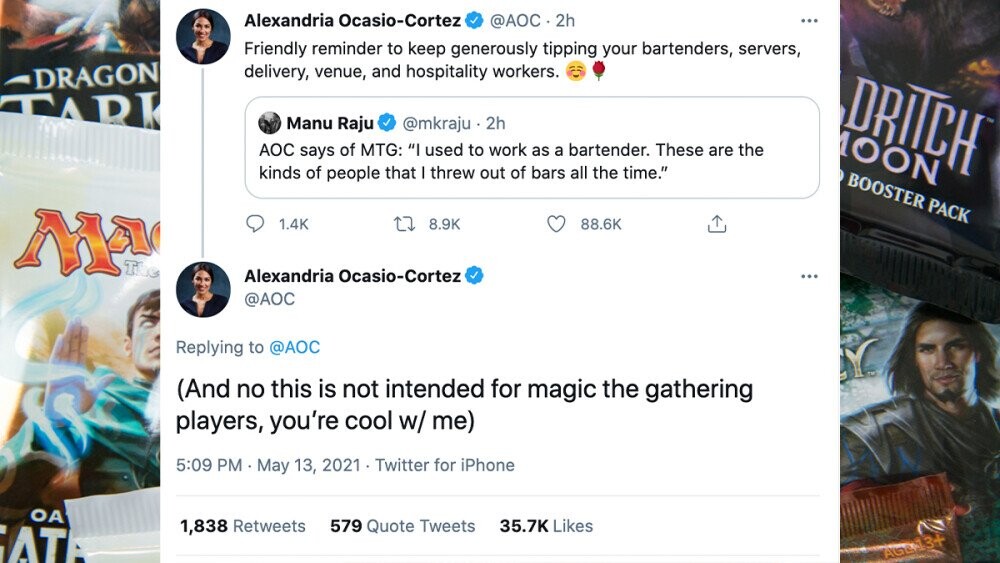 Amid the brouhaha, the Congresswoman took to her page to offer a clarification, on both the meaning behind the quote tweet and her thoughts on the game. “And no this is not intended for magic the gathering players,” AOC wrote in reply to the initial tweet. “You’re cool w/ me.”