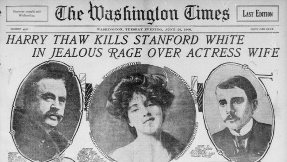 To the news media, which had long salivated over the "degeneracy of the so-called higher classes," it was like someone had dropped a basket of kittens into their laps. Finally, they had not only the most damning possible proof of that "degeneracy" but scores of witnesses willing to speak to it. Within hours, they'd descended upon everybody whose cousin's friend's grocer was there and everywhere Stanford White had so much as used the toilet, looking for info. By the next morning, the New York Times had lovingly reported exactly how White's body "tumbled from the chair" and "fell to the floor" in a "great pool of blood" while the audience, first believing the incident to be part of the show, slowly realized the horror of the situation. By the next week, two movies had been made about the incident, one financed by Thaw's own family and another by Thomas Edison, because why not throw him in here?