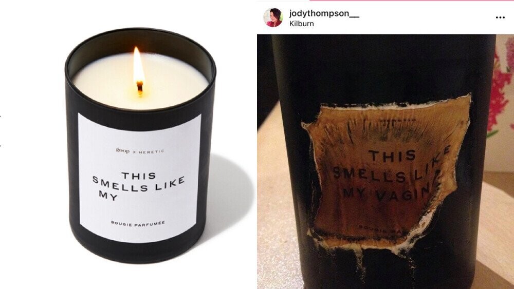 On today's installment of Goop, Gwyneth Paltrow's comically pretentious lifestyle brand, being Goop, the company has yet again proved that private parts and flammable objects are a match made in hell, facing a lawsuit from a Texas man who claimed that the company's infamous “This Smells Like My Vagina Candle” “exploded" while burning on his bedside table.