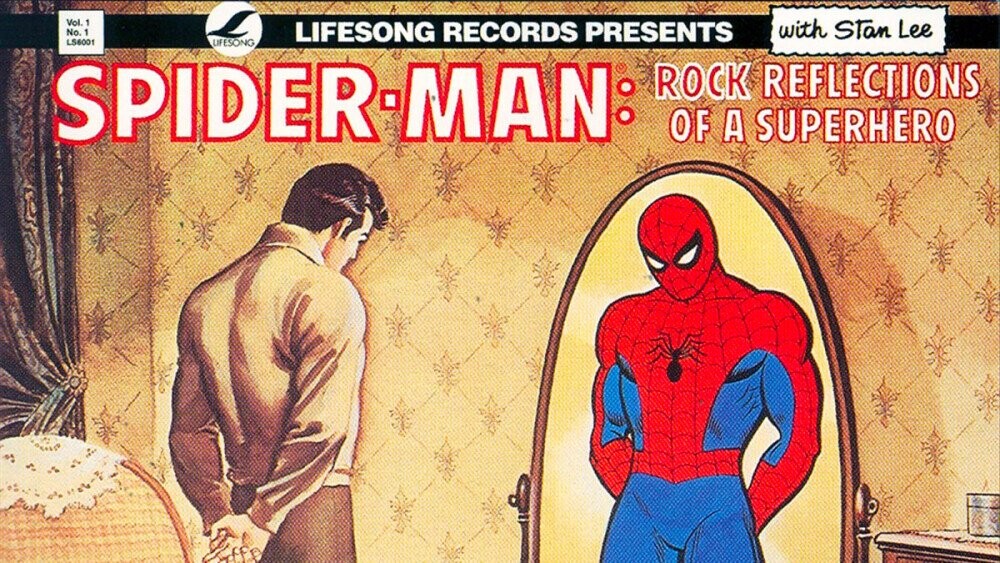 Then, in the same year, Marvel's first fully backed album arrived. The Amazing Spider-Man: From Beyond The Grave: A Rockomic (you know it's a bitchin' rock-opera because it has two colons) was created by fictional superband frontman Ron Dante of The Archies. The album is a full-on musical that has a rock-god Spidey who, ahem, "makes all the little girls sigh."