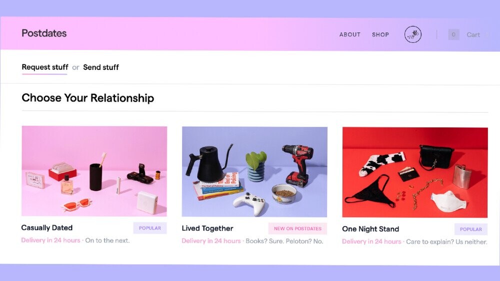 Have you been missing your comfy, oversized college sweater you thought you'd never see again? Did your ex steal your good coffee maker? Did the rich dude you dated when you were 19 years old also steal the $50 menorah you personally paid for while you were together, holding it hostage out of sheer spite for nearly five years now? Well, folks, it seems Postdates – an apparent play on the food delivery service Postmates – has your back, offering several services to help facilitate a reunion with your once bygone belongings while helping you avoid one with your ex.