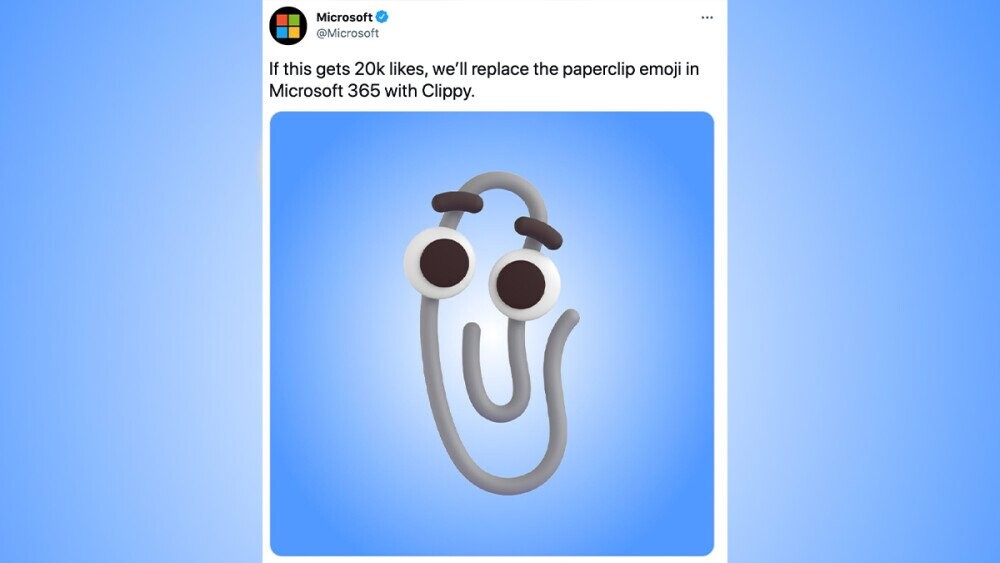 Despite Clippy's widespread infamy, the post quickly went viral, surpassing the set goal of 20,000 likes. However, Microsoft has stayed intentionally vague on whether the world's most annoying early aughts digital assistant will make a not-so triumphant return or if the post was merely for clips and giggles. Shortly after the tweet surpassed its like benchmark, a fan reached out to the company to ask if they were serious about the icon's return, to which they replied a very ominous “wait and find out.”