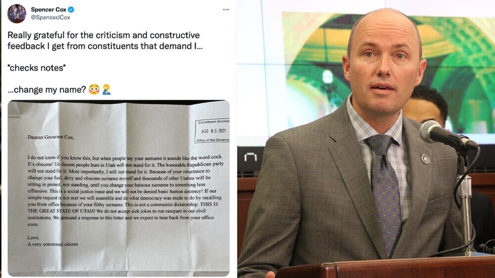 Utah Governor Spencer Cox Shares Concerned Citizen Letter Demanding He Change His 'Foul, Dirty, and Obscene Surname'