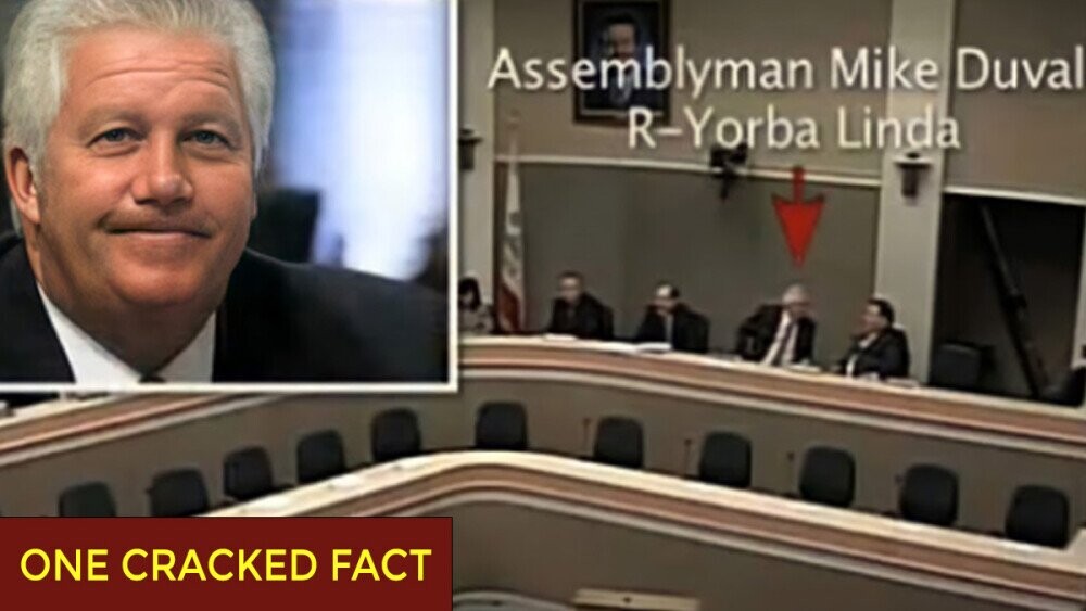 On July 8, 2009, California Assemblyman Michael D. Duvall was in an appropriations meeting. The room had TV cameras, and a mic sat in front of every speaker. Duvall assumed his microphone was still off when he leaned toward a colleague and started talking about the woman he'd been seeing behind his wife's back.