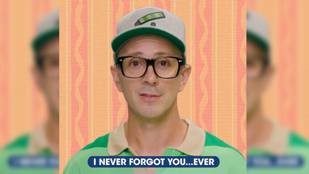 "You remember how when we were younger, we used to run around and hang out with Blue and find clues and talk to Mr. Salt and freak out about the mail and do all the fun stuff?" Burns said in the clip posted to Nick Jr.'s Twitter account, which has since garnered more than 20 million views less than 24-hours after its posting. "And then one day, I was like, 'Oh hey, guess what? Big news, I'm leaving. Here's my brother Joe, he's your new best friend,' and then I got on a bus and I left and we didn't see each other for like a really long time? Can we just talk about that? Great. Because I realize that was kind of abrupt." he continued.