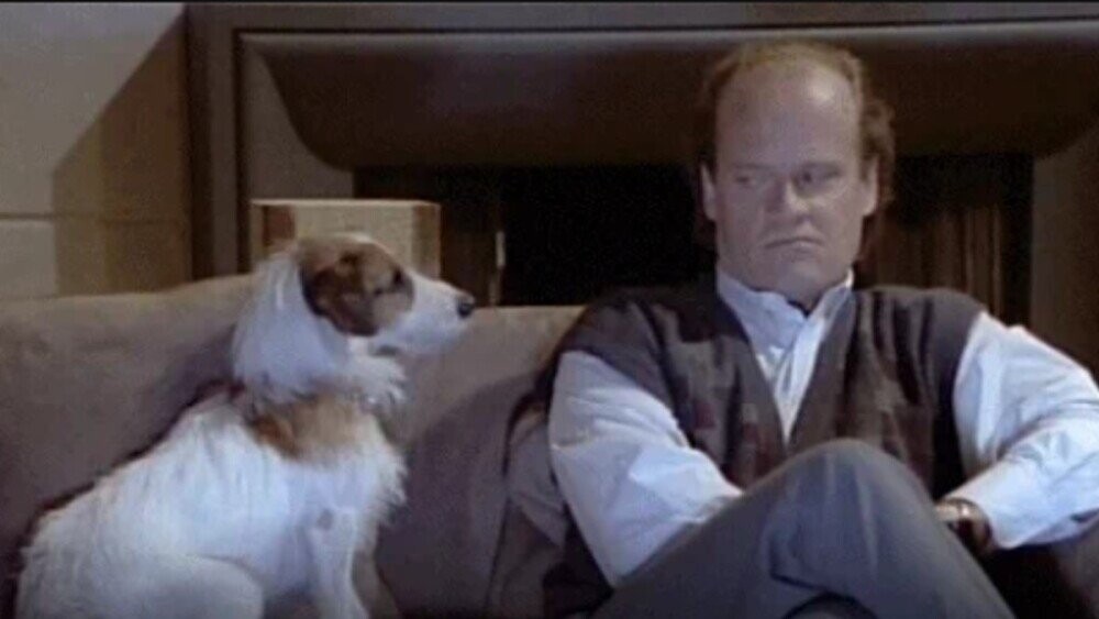In 1994, Kelsey Grammer gave an interview that would have no doubt made for a fascinating case study for his psychiatrist alter ego. It was a time when a Washington Post reporter could come right out and call their celebrity subject "disgusting" without being banished to the copy desk, and the star of a popular series could publicly muse about the quality of his onscreen ex-wife's butt, so you already know you're in for some uniquely raw mid-'90s comedy action, but when the reporter asks Grammer how he feels about the unexpected rise to stardom of Moose, the dog who played Eddie on Frasier, it takes a turn from uncomfortably candid to downright pitiful.