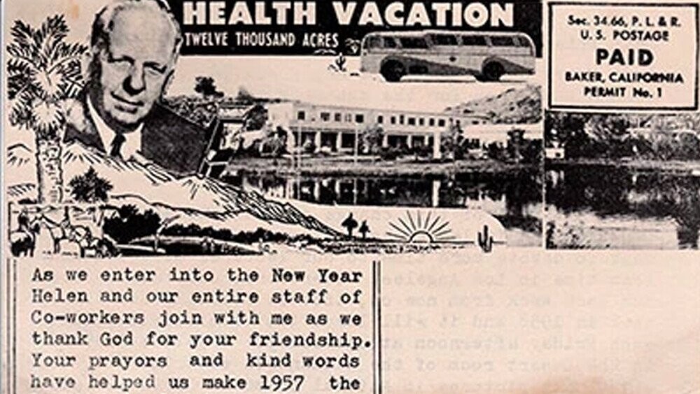 Springer had a post office built for him in a surrounding town to keep up with the copious amounts of mail he received as he sold his products across the US. This included his Nerve Cell Food, Hollywood Pep Cocktail, and Antediluvian Herb Tea, all of which mean nothing to the average person other than a potion he came up with from the top of his head. According to an article from the National Park Service, "a former employee described Doc Springer's formula as 10% crust from Soda Lake and 90% Epsom salts." Panic really struck when sick people who visited Zzyzx needed legitimate medical attention and were stuck with a compulsively lying twit in a lab coat.