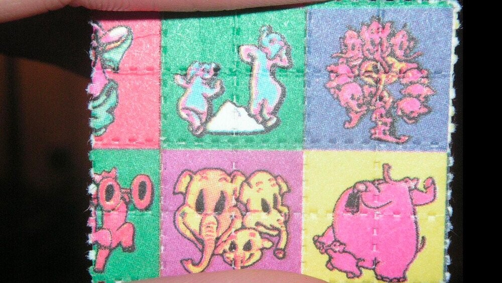 Since the '70s, McCloud has collected blotters and framed them like Picassos in his home. Blotters are sheets of paper with a psychedelic twist; they're soaked in LSD. McCloud began his collection when images first appeared on LSD tabs in the late '60s from New York, being the first commercially available version of the drug. Prior to that, tabs of LSD used to resemble plain index cards with no sign of drug activity attached to them and really just a place to study your multiplication tables. Artistic blotters came to be a way for users, dealers, and producers to tell the origin of one LSD tab from another via tiny crystals hanging out on the art.