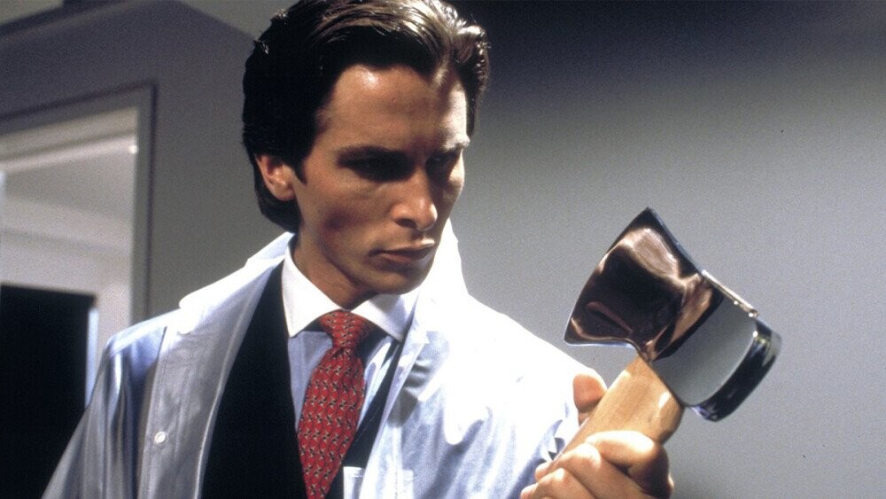 Now for those of you who haven't seen the movie since you returned the videotape back to Blockbuster circa 2002, American Psycho details the life and times of a rich banker named Patrick Bateman, played by a young Christian Bale, living in Manhattan during the yuppie/financial renaissance of the 1980s. Between his busy schedule of business card-related pissing contests with his rich colleagues, applying a multi-step skincare routine, and flexing his knowledge of Huey Lewis and the News, Bateman has a habit of murdering people for funsies – first a homeless man and his dog, then Paul Allen, his colleague portrayed by a pre-cult leader Jared Leto, and ultimately a giant cast of characters including several sex workers, doormen, and even an elderly woman begging him not to feed a stray cat to an ATM.