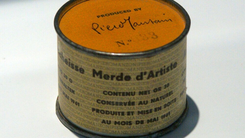 But Manzoni's masterwork came in 1961. In May of that year, Manzoni meticulously canned and labeled 90 pieces of his own poop. Manzoni made sure that each can was identical; they each had 30 grams of his, uh, finest work, and the can was made to appear like a common commodity besides an identifier number from 001 to 090.