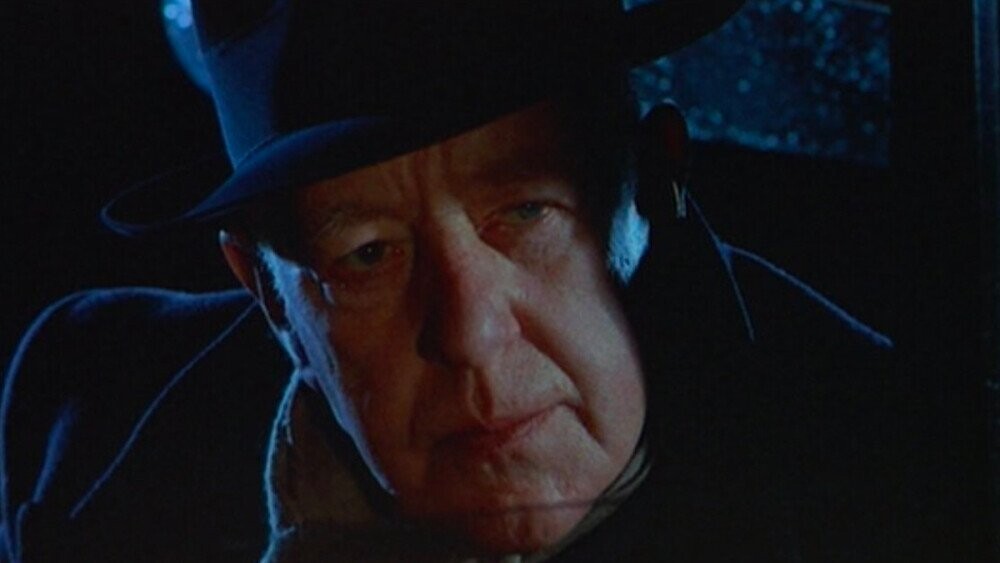 When we meet the big bad guy, the ringleader of the shadowy snuff film consortium, ominously nicknamed “The Reaper,” it’s Alec Guinness. Although he doesn’t have much screen time, never actually gets out of his car, and is billed only as “Mystery Guest Star” in the end credits.