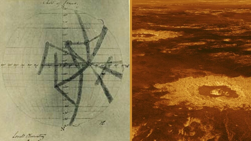 Lowell also figured out the best place to build observatories and made progress toward finding Pluto, so he wasn't a total nut. But he also did make one other nutty finding, and this was one that no one else was able to replicate. He pointed his telescope toward Venus and saw what he called spokes, extending outward from a dark central spot. They looked the same no matter where Venus faced, which raised some interesting ideas about the planet's orbit.