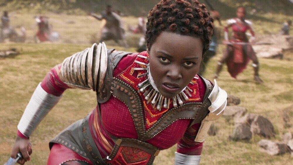 Now, if you have trouble remembering Nakia … then you might be a Marvel executive since the character was weirdly missing from both Infinity War and Endgame. She was apparently busy on spy missions, which she couldn't reschedule for something so trivial as an all-out war against Earth with half the life in the known universe on the line. Anyway, in the first Black Panther movie, she was introduced as a War Dog, a covert Wakandan operative who just spent two years infiltrating a Nigerian human trafficking ring.