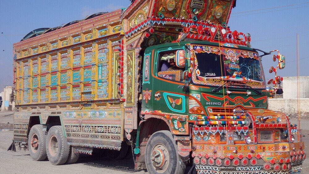 American truckers decorate their rigs with provocative mud flaps, chewing tobacco spit-stains on the driver's side door, and sometimes a coyote wedged into the front grill. But in Pakistan (and neighboring Afghanistan and India), road-warriors adorn their "jingle trucks'' with near-infinite forms, hues, and baubles:
