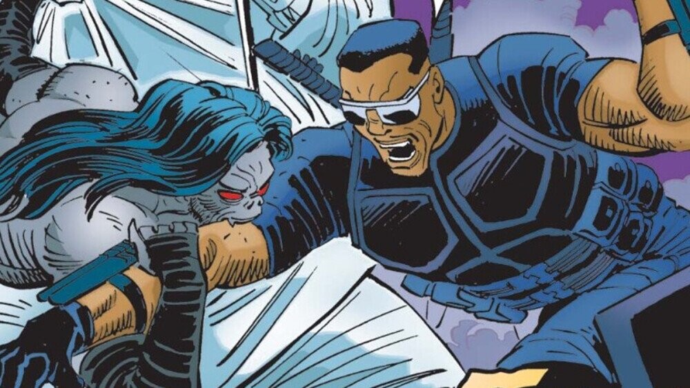 I was surprised to learn that Blade was basically a normal human for the first 25 years of his existence. The black and white magazine Vampire Tales introduced the idea that Blade's mother was a sex worker and he was raised in a brothel after her death, with the character's origin unchanged until the 1994 animated series. This was a superhero TV show that went out of its way to avoid showing its superheroes throwing punches, so it makes sense that the creators might want to avoid the risqué origin of Vampire Tales. To compensate, Blade was introduced as half-vampire for the first time, a change embraced in the 1998 film.