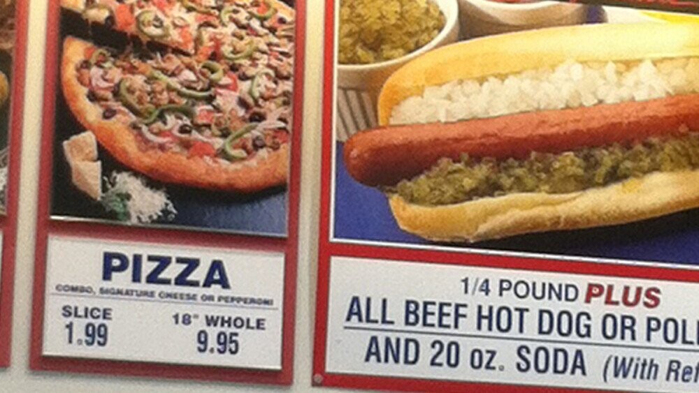 The only reason we might want to stick an asterisk next to Costco in the pizza hall of fame is that, possibly, they're not selling pizza at all. They're kind of giving it away. Like we just said, their pizza's cheap, $2 for an enormous jumbo slice or $10 for an 18-inch extra-large. That's so cheap, the pizza kitchen has to be losing money, or at least not making anywhere as much as they could.