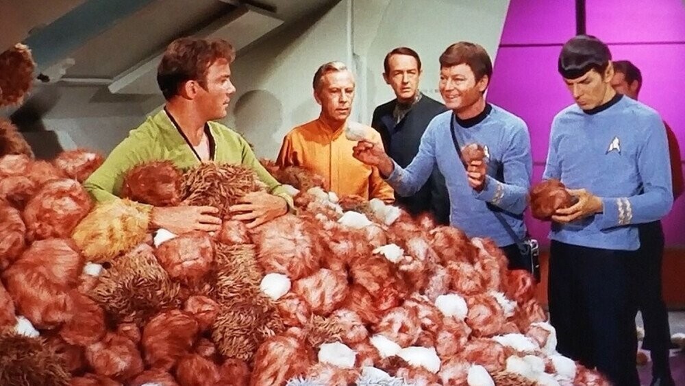 In season 2, episode 15 of the original series, cute little fury animals called the Tribbles have multiplied all over the ship.