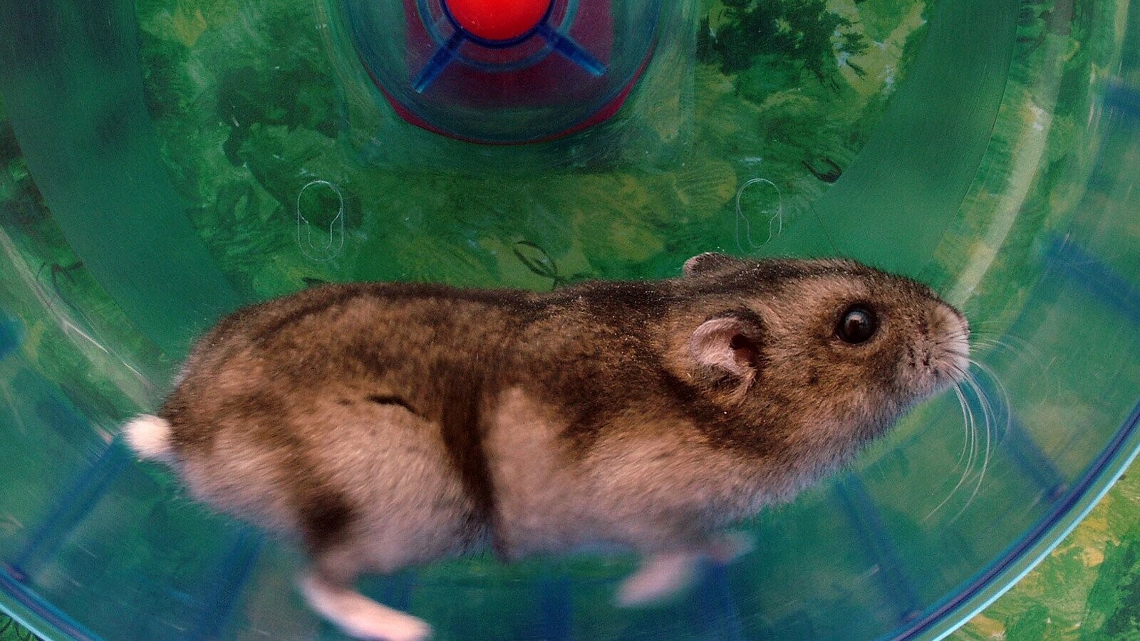Picture a cage in your room, where you keep your pet rodent. It contains food, and bedding, and a little wheel for it to exercise on. Your pet (a hamster maybe, or rat, or gerbil) runs on this wheel. But you have doubts about how much it really enjoys it.