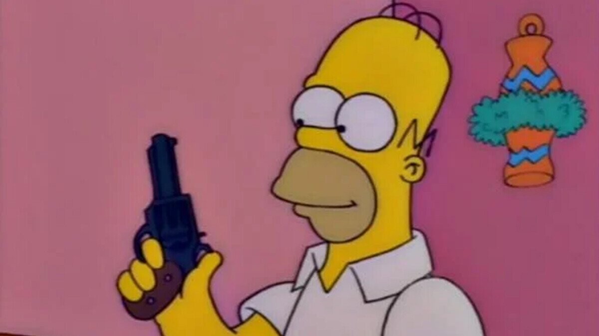 In this episode Bart finds a revolver in the fridge, Homer points a gun at marge's face, and Bart almost shoots Milhouse in the head.