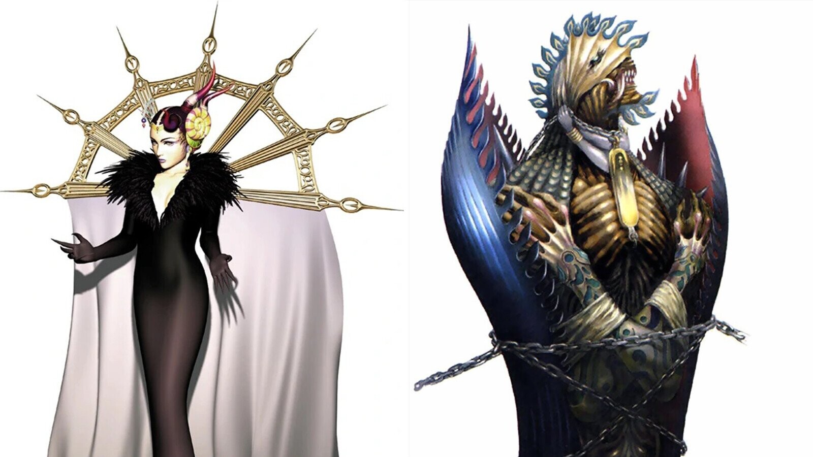 Many of those pieces, or at least the wildest ones, seem inspired by Sorceress Edea, a character from Final Fantasy VIII designed by Tetsuya Nomura.