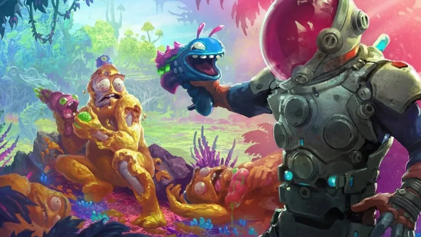 It's been a big weekend for gamers, as Bethesda and Xbox finally revealed Starfield, their biggest title in a long time – too bad it actually looks way less fun than High On Life, a bonkers indie game made by a guy who does funny voices. High On Life looks like it could take place in a Rick & Morty universe where everything is 3D, and that's great. Instead of trying to cash in on the popular brand, Justin Roiland created a new experience where we get the weirdest arsenal we've ever seen in a game. That's a big claim, yeah, we know that the Metal Gear Solid series features actual water pistols and that the Final Fantasy series features weapons that don't know whether they want to be guns or swords. The thing here, however, is that all weapons on High On Life are living beings. They all have their own personality, their own mandatory weird voice, and are also seemingly sacrificing their kids so that we can use them as ammo– yeah, one of the weapons gleefully states that his kids are easy to make, so it's totally cool to shoot them at the enemies.