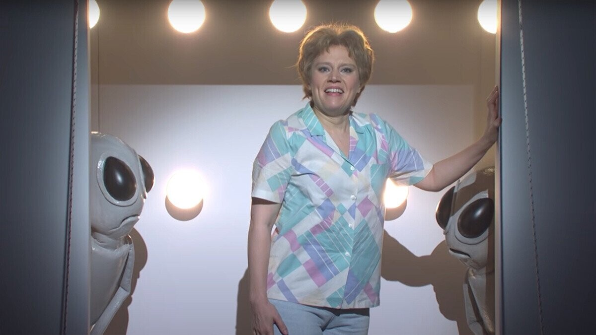 McKinnon said the SNL character she identifies the most with is, “Ms. Rafferty, the perpetual alien abductee. I, too, prefer bad restaurants, bad hotels, bad train rides, bad movies, and bad weather. I thrive in those environments. I feel alive.”