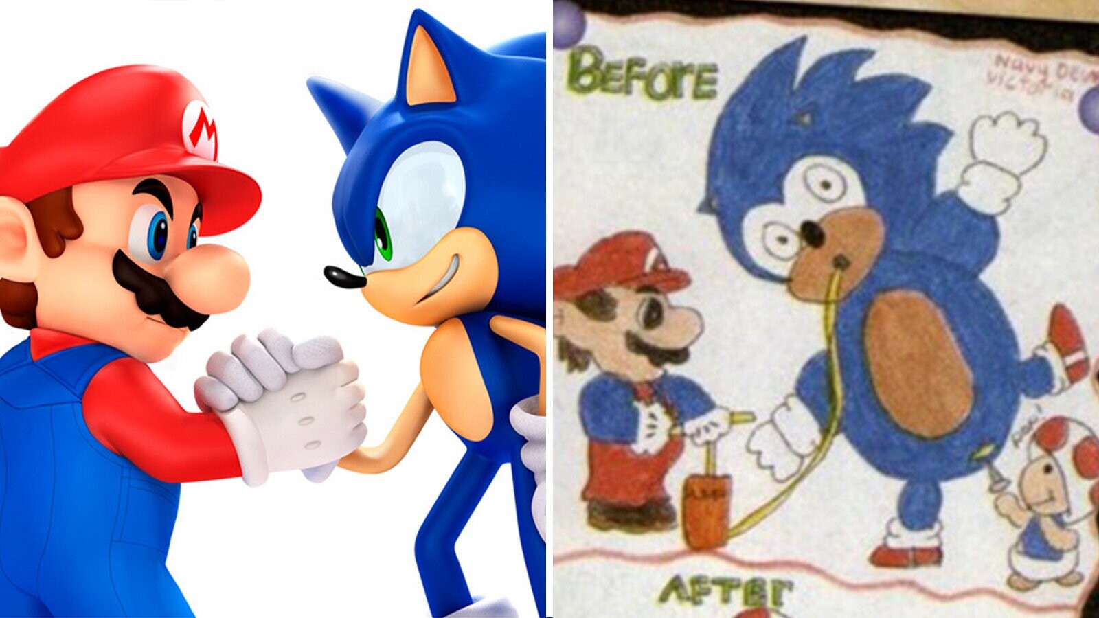 Please note that Mario is pumping Sonic full of air but Toad is the one exploding him, thus staying pretty true to Nintendo's modus operandi of getting kids to do the dirty work – and lending credence to the theory that Sonic really was murdered by Nintendo agents on that fateful Macy's Day Parade.