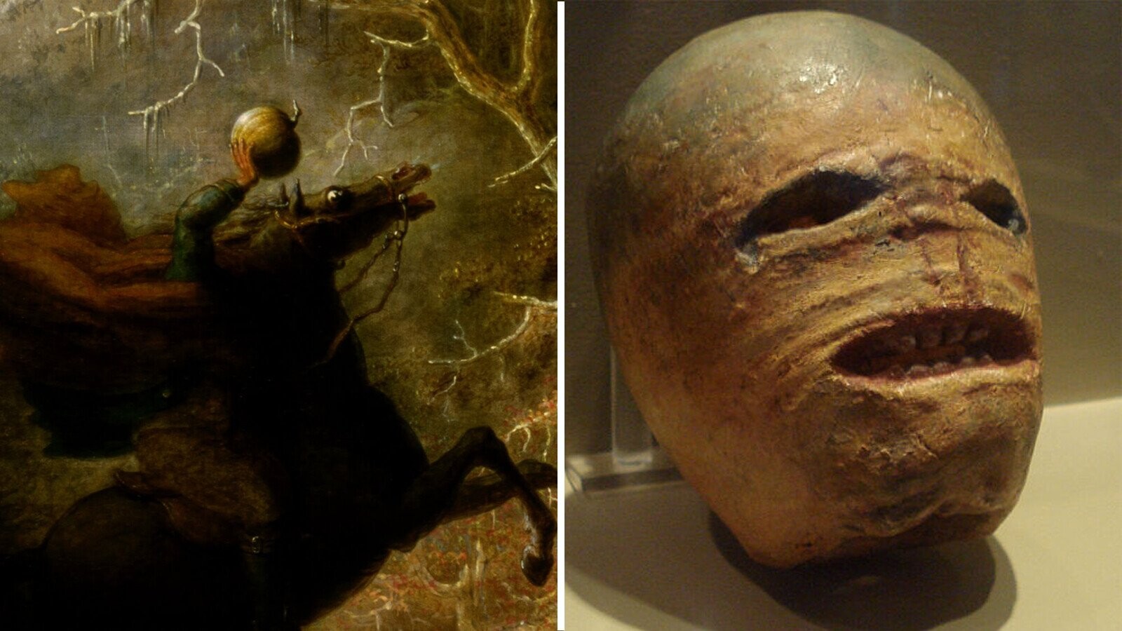 Jack-O-Lanterns also found their way from folk tales to full-on literature fairly quickly, most famously as the alternate head of one famously headless horseman. Despite the general unwieldiness of a pumpkin as an ersatz head, it seemed that the ghastly galloper was a bit of a sucker for aesthetics. Personally, I might just go for a regular skull, since it seems a whole lot lighter and less likely to attract raccoons, but maybe that’s why I’m not a specter of legend.