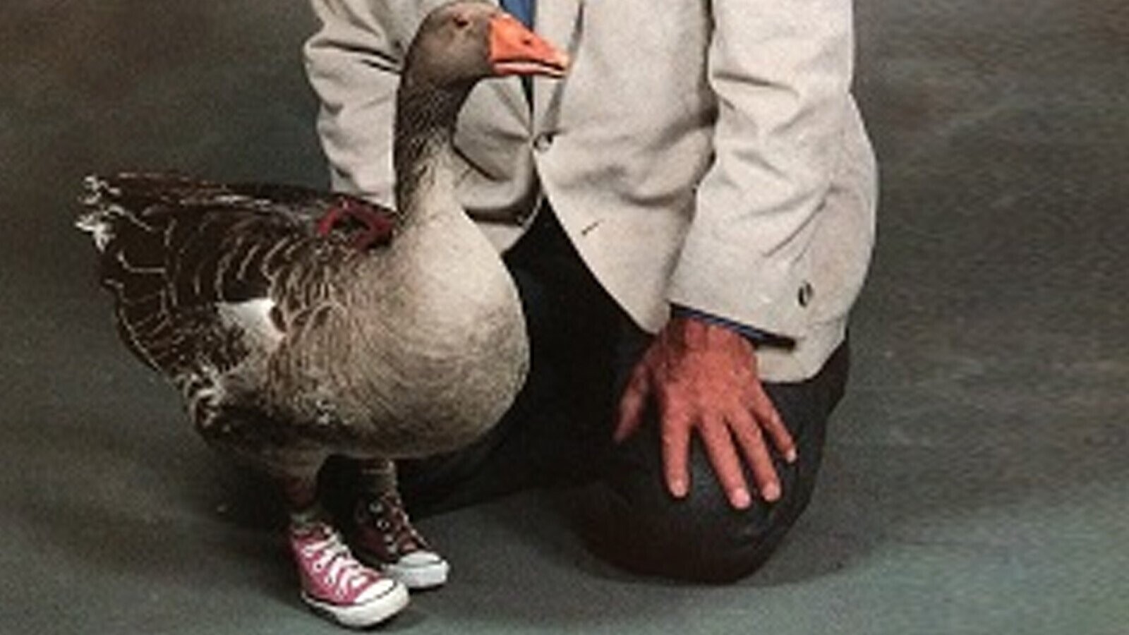In 1989, he met Andy, a goose at his sister-in-law’s farm who’d been born without feet. Andy couldn’t walk, of course, but Gene adopted him and hunted for a solution. His first idea was to build the goose a custom skateboard. That turned out horribly, but his next plan—custom baby shoes—worked great, and Andy soon could walk fine.