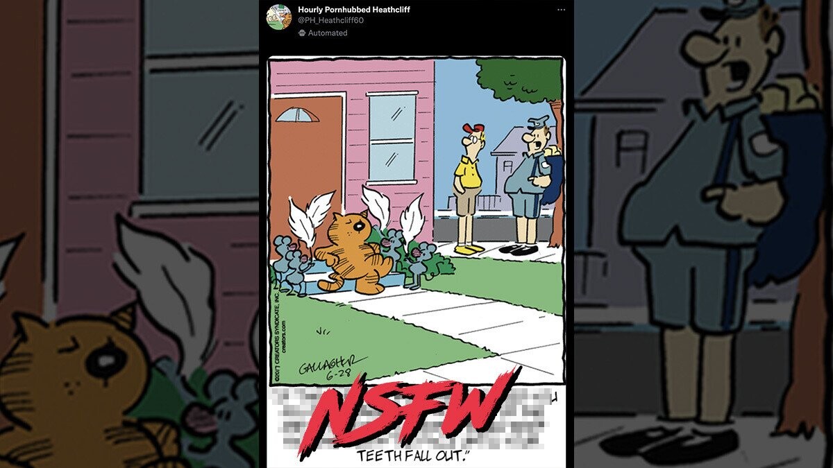 The steps are simple — take a Heathcliff comic, load up a Pornhub video, grab a random comment, combine and tweet. That has been the winning formula for the Twitter page Hourly Pornhubbed Heathcliff, an automated account that has been doing exactly this every hour on the hour since January and accrued a respectable five-digit following over the 7,000+ posts that have ruined our second favorite orange cartoon cat forever.
