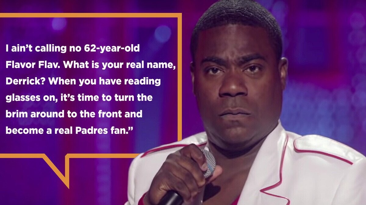 “You gotta grow the f--k up! You can’t keep doing the shit you were doing when you were 18. I was watching Couples Therapy the other day. They had Flavor Flav on there. Flavor Flav is 62 years old. I ain’t calling no 62-year-old Flavor Flav. What is your real name, Derrick? And take that clock off, goddammit! He had his hat off to the side with reading glasses on. When you have reading glasses on, it’s time to turn the brim around to the front, and become a real Padres fan.”