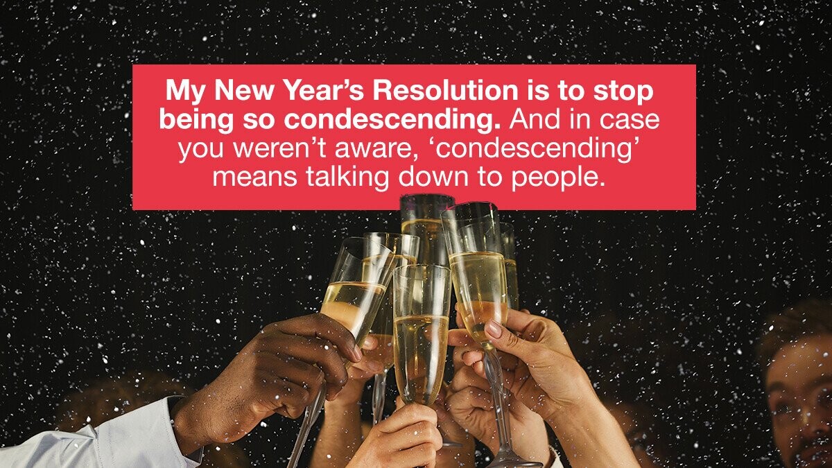 My New Year’s Resolution is to stop being so condescending. And in case you weren’t aware, “condescending” means talking down to people.