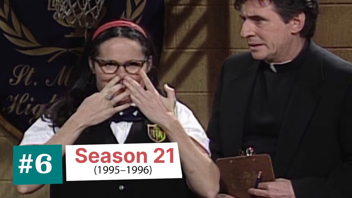With the show on the ropes after a miserable Season 20, Michaels roped in Darrell Hammond, Jim Breuer, Cheri Oteri, Chris Kattan, and a fellow by the name of Will Ferrell. With Molly Shannon promoted to the main cast, another strong foundation was firmly set in place. Almost everyone hit with a recurring character, from Ferrell and Oteri’s Spartan cheerleaders to Shannon’s Mary Katherine Gallagher to Ferrell and Kattan’s Night at the Roxbury guys (funny at first!) to Breuer’s Goat Boy and Joe Pesci. The SNL online gift shop is still full of merch featuring these characters.