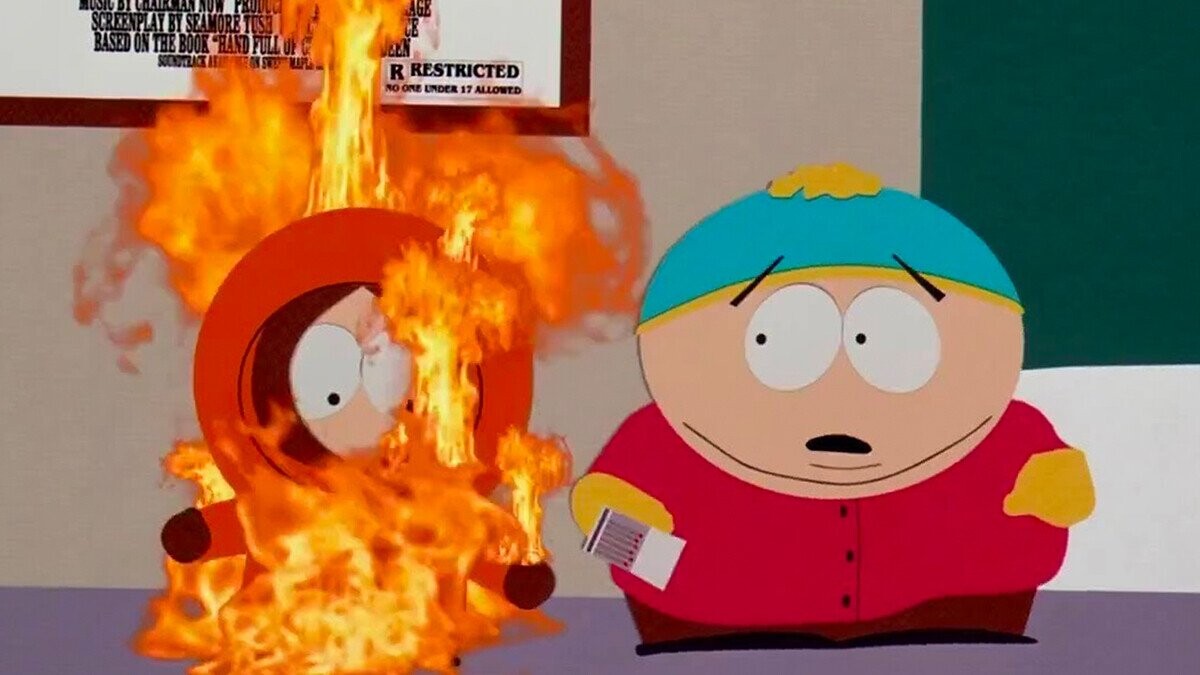 The boys are just walking down the street when Kenny bursts into flames, making Kyle yell, “You bastards!” at no one in particular. It’s later determined that Kenny exploded from holding his farts for too long due to having a new girlfriend, which inspires the entire town to fart so much that they cause a hole in the ozone layer. Remember, kids: Always fart responsibly.