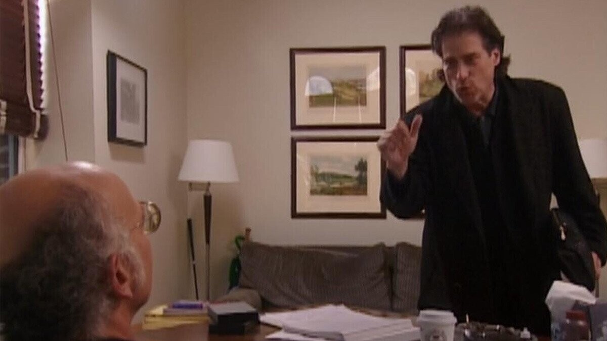 Richard Lewis gets introduced right off the bat as Larry’s pal, Richard Lewis. The two friends get in a fight when Lewis’ date accuses Larry of staring down her dress while trying to get past her in a movie theater. “You’re looking at my girlfriend’s breasts!”